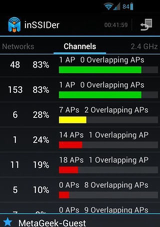 使用inSSIDer可以轻松为您的WiFi网络选择正确的频道。扫描无线环境,选择您的WiFi网络,inSSIDer为您推荐最好的WiFi频道。它还可以快速轻松地执行常规抽样检查,以确保最佳的信道选择,并最大限度地减少或消除相邻网络的干扰。