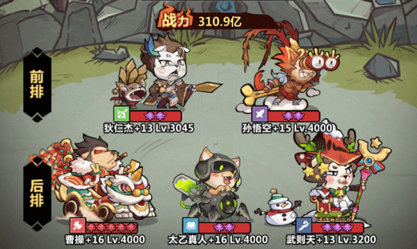 如果遇到推图卡关和推图速度慢的情况,可以考虑用主C同时搭配一个带增益的姜子牙与带减益的孙悟空,在强化我方战力的同时狠狠削弱敌方的战力,想想就很刺激!