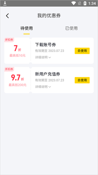 5、平台的优惠券会不定期给用户进入派发,用户可以前往应用的优惠券页面中进行查看