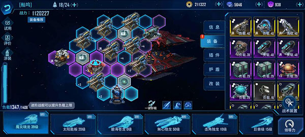 3、目前的船只中CV和BBC槽位最为合理,CV可以装配为3*3格、10*2格、2*1格;BBC可以装配为2*3格,8*2格,2*1格。剩下的2个1格,1个放加速器,1个放万能武器[阳离子照射炮]。稍晚用手机上图。