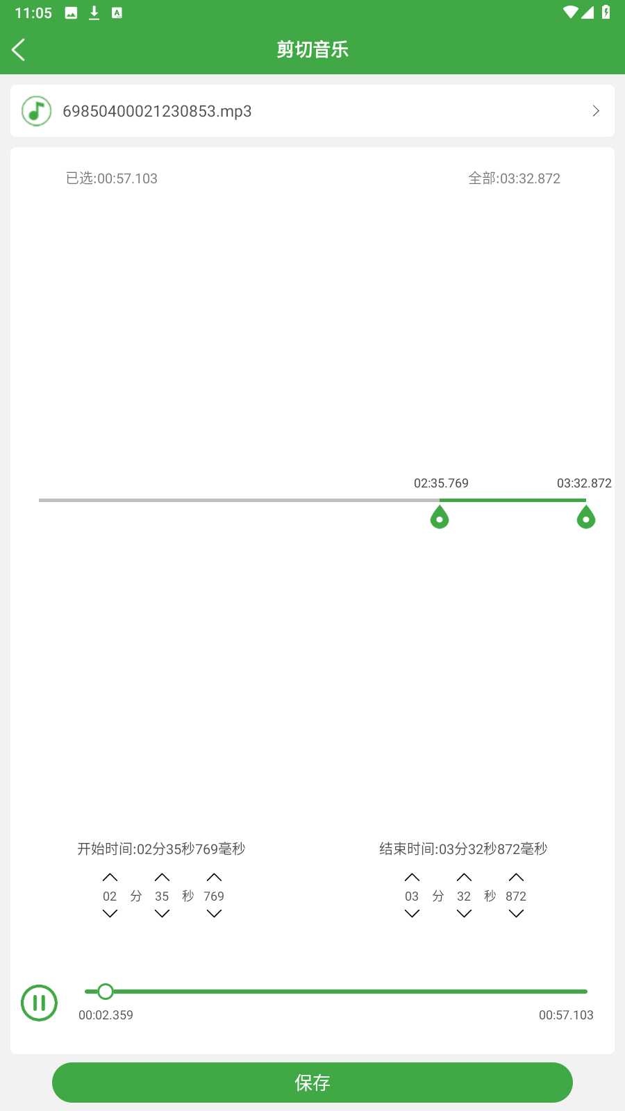 音频剪切:本地音乐库,自定义音频裁剪范围,剪出你要的特别精彩;
