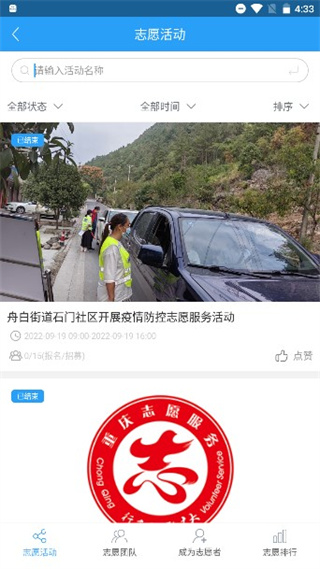 3、进入志愿服务这一栏,可以查看各种不同类型的志愿活动。