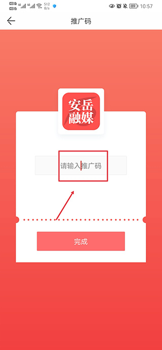 4、然后在请输入推广码的位置,输入你单位的推广码,点击完成即可。