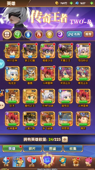 英雄融合,全局展示英雄升星材料收集进度,献祭则可以把不需要的英雄分解成材料,同时,炫彩可diy英雄颜色