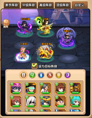 阵容的话,推荐暗瞳、伏羲,狐狸,千兽,魔神雷禅。有奶有输出,有控制。合击带上最强怪兽卡,献祭禁术,传说烹饪,和萌哒哒的萌化剑术开始大杀四方吧。
