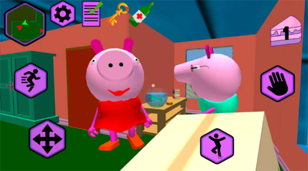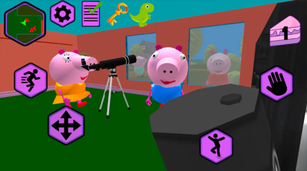 疯狂佩奇一家是一款以小猪佩奇为题材背景的趣味冒险手游,采用精简的游戏画风,加入丰富的色彩元素制作,为你营造出了一个非常梦幻的王国,给人一种貌似很放松的游戏氛围。游戏中佩奇一家还是那个可可爱爱的吹风机形象,但是画风却又一点点的诡异,玩家需要在佩奇的家里开始一段紧张而刺激的逃亡之旅。游戏玩法非常简单,玩家可以通过点击屏幕来控制角色的移动找到所有线索,这些线非常有用,寻找的过程中我们需要小心周围的环境和佩奇一家,避免被抓。