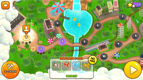 游戏特色包括两个主题公园世界、40多种独特的过山车模型(比如独角兽、坦克等)、25种有趣的服装选择以及一个关卡编辑器,玩家可以自己设计关卡。此外,游戏还支持离线玩法,无需联网,非常适合休闲娱乐。