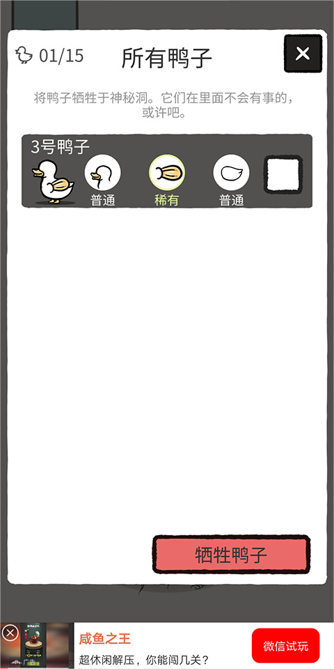 3、【数量】随着每一代鸭子的孵化,你能控制的鸭子越多,你就能有更好的选择;