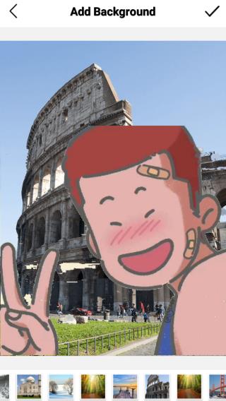 2、替换背景:内置上百套优质背景图库,更换想要的背景或选取相册自定义添加;