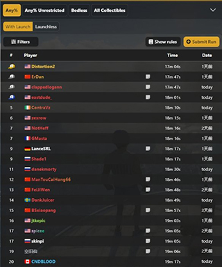3、现在世界排名前三的分别是Speedrun(17分4秒)、ErDan(17分47秒)和clappdelogann(17分47秒)