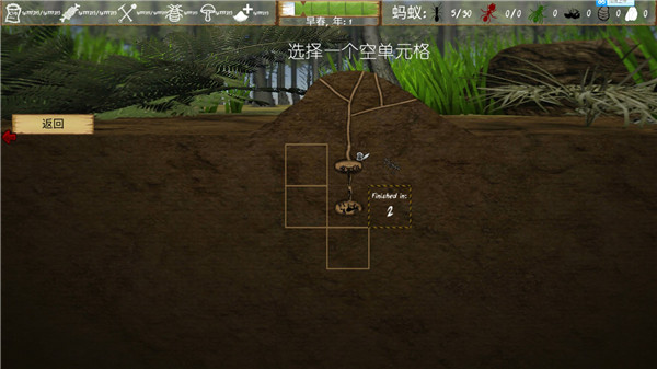 用合理的战略布局打败对手,慢慢提升自己。此外,最后一只蚂蚁还特别添加了天气和季节的变化。季节会影响你食物的收成,冬天对蚂蚁来说是致命的,天气会影响你的部队和周围的环境,注意可能出现的大型昆虫。游戏创新地以蚂蚁世界为模板,描绘了真实的地牢场景,将这个小小的蚂蚁巢穴扩展成蚂蚁帝国,让世界布满蚂蚁的领地。