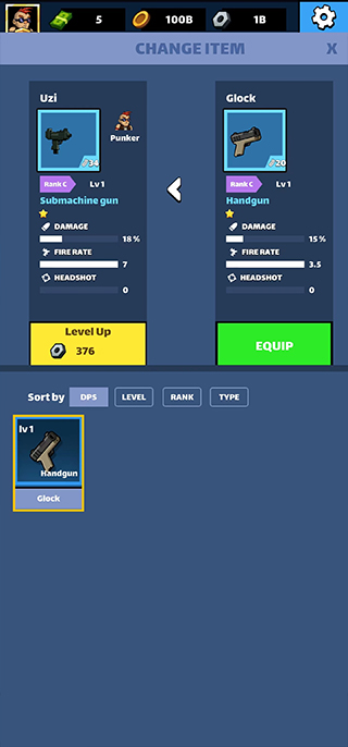 6、点击枪械,将更强力的武器更换上去,还可以对武器进行升级;