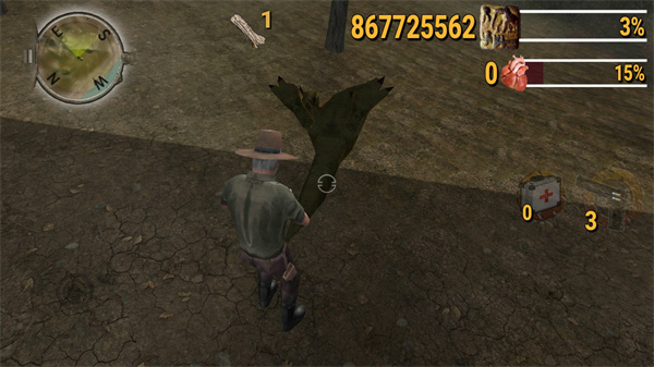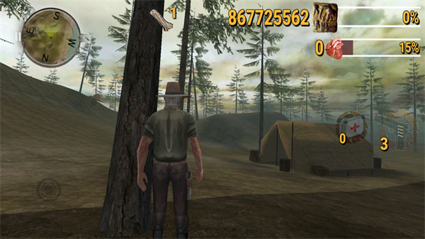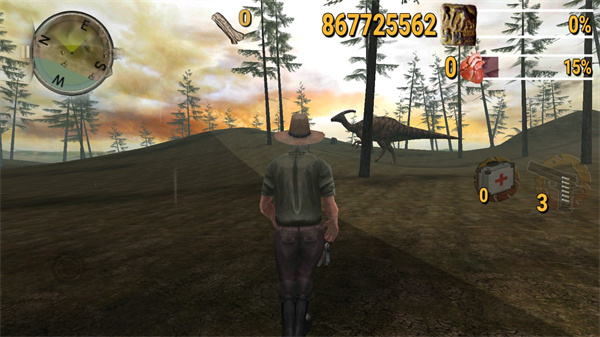 3、玩家在游戏中除了射击恐龙还可以找到一些资源,比如树木、血包等等;