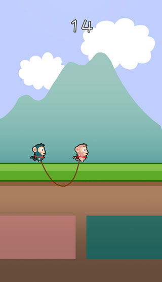 好兄弟手牵手是一款好玩有趣的竖版2D画面双人合作闯关手机小游戏,Q版可爱的角色形象设定给你萌萌哒的视觉效果。在游戏中玩家将控制两只可爱的小猴子展开跳跃,每跳跃一次都会获得分数,跳的越远则分数越多,在这期间我们需要注意不能掉下悬崖,否则就会导致游戏失败,整个的过程特别考验玩家的协调性。此外,如果其中一只小猴子不小心掉下悬崖了也不必担心,另外一只还是可以进行补救的,但这得看玩家的游戏技巧了。该款游戏比较适合大家闲暇时间用来打发时间,相信你玩过之后便会被其深深吸引,感兴趣的小伙伴们还在等什么呢,快来下载体验吧。