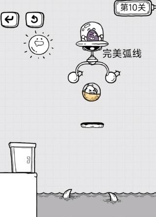 2、然后茶叶蛋会在水面上漂浮,大家如图再画一条曲线,然后曲线会带着茶叶蛋一直沉到水底,进入门即可通关。