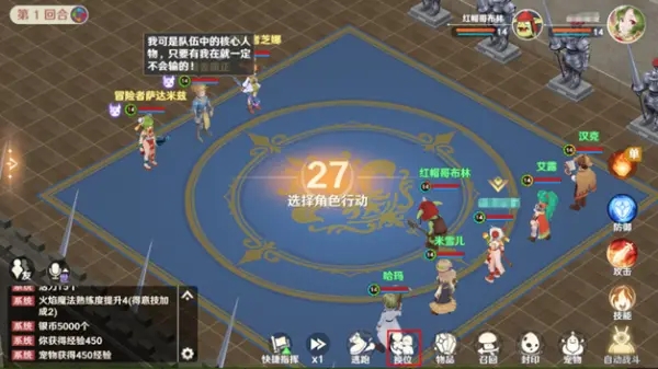 战斗默认设定:宠物在前,人物和伙伴在后。但是可以点击换位,宠物和主角交换位置。