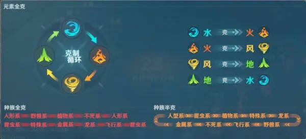 我们的克制分为三种:元素全克,种族全克,种族半克。