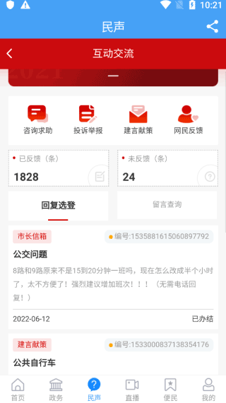 3、如果有什么不满的话,看看“民声”里面能反馈你近期遇到想解决的问题。