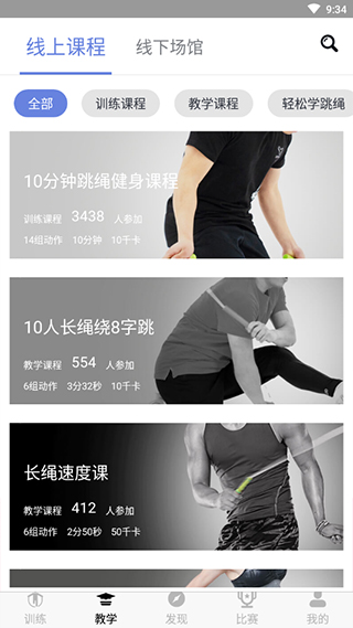 跃动跳绳是由上海跃动文化传播有限公司开发的一款线上跳绳比赛平台软件。软件可以满足广大跳绳爱好者、学生乃至运动员的需求,可以帮助用户进行更好,更准确地进行跳绳训练方式。软件平台还提供了跳绳线上课程,从入门、多人绕8字跳、到快速跳绳,一步一步来引导用户掌握正确的跳绳姿势。在全国各地还有专属的线下跳绳馆,你还可以去实体跳绳馆与多名爱好者一同体验多人跳绳的运动。软件还可以连接跃动跳绳推出的智能跳绳设备,实现线上多人比赛,与他人竞技谁跳得更快更多。