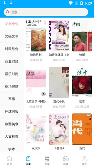 在分类中是软件所有的类别,包括文学小说、文摘文萃、人文科普、家庭养生、农业农村等几十个分类;