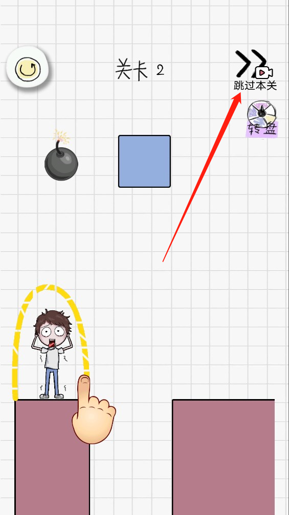 3、小男孩成功避免伤害后就会进入到下一关,如果不知道怎么画线让小男孩避免伤害的话,也可以选择“跳过本关”哦!
