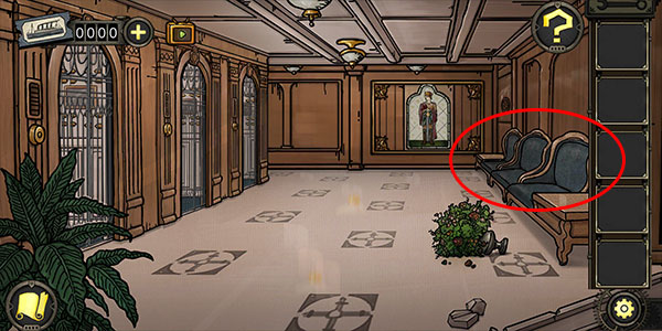1、前往电梯间,查看椅子扶手,得到线索。