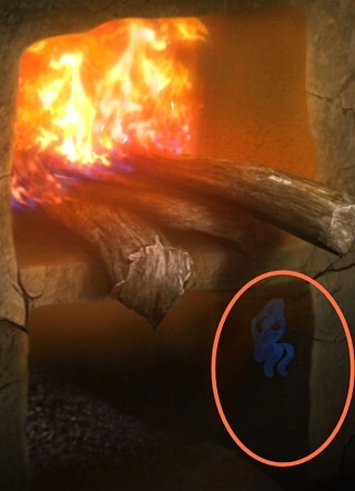 13、回刚才房间的灶台,底下柴火用【打火机】点上。