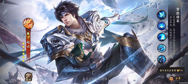 如果有条件建议还是可以搞个首冲赵云(6块),赵云属于前期的万金油武将,能起到清兵或点杀武将作用,他有很强的突刺能力以及AOE能力。