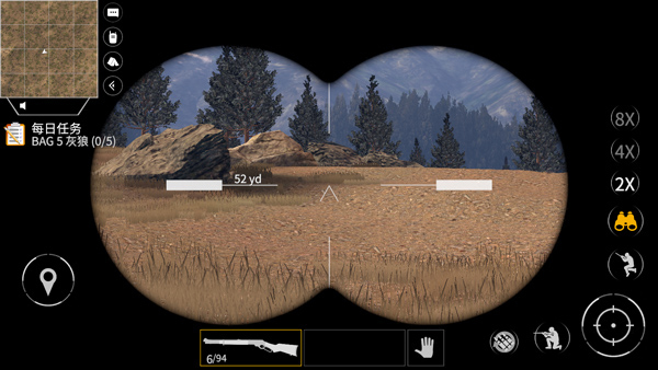 游戏还有联机功能,玩家可以和其他人一起玩。操作相对简单,有多人模式可以选择。你可以选择不同的狩猎地图和游戏选项,比如自动瞄准和灵敏度调整,还能用鹰眼快速寻找猎物或用望远镜观察远处的动物。击杀猎物后,点击手掌图标就能拾取战利品。