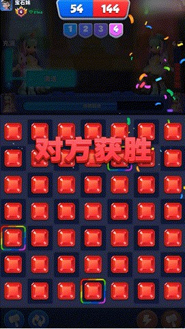 《宝石大乱斗》的操作棋面由 7*7 的49 个格子组成,其中随机分布 6 种颜色的宝石, 挑战者通过移动步数交换两个相邻的宝石,若 3 个及以上的同样颜色的宝石位于同一列或同一行这些宝石将被消除,每消除一个宝石得 1 分,对局结束后,分数高的玩家就是最后的胜利者啦~