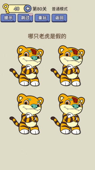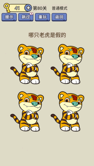 疯狂最强脑洞游戏第80关哪支老虎是假的?