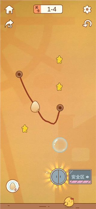 《鸡蛋大冒险》是一款风格清新简约的休闲闯关小游戏,玩法类似于割绳子,玩家需要通过切割绳子让鸡蛋安全落入传送门完成挑战。每个关卡有三颗星星,代表着评分等级,所以不仅要顺利完成通关,还要尽量收集这些星星来提升自己的成绩。