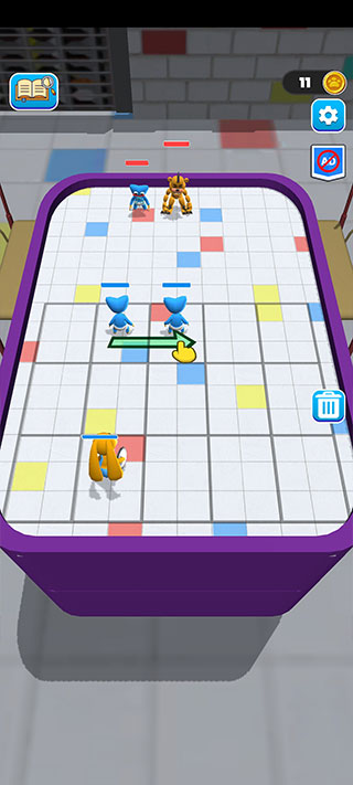 波比游戏合并大师是一款卡通风格的趣味休闲合成闯关类游戏,该游戏在玩法上融入了战棋加合成的元素,玩家们在游戏中将控制棋盘上的小人去战斗,棋盘上的小人分为两种类型,一种是近战肉搏类,还有一种是远程输出类,在游戏开始前你需要通过合理的布局来应对敌方的阵容,期间你可以将两个相同的小人合并成更高级的战士,当您解锁新的动物或战士时,您将有机会创造成功的蓝色怪物、小指怪物等各种类型的小人,总之你要做的就是在这块棋盘上运筹帷幄,击败对方,完成闯关。