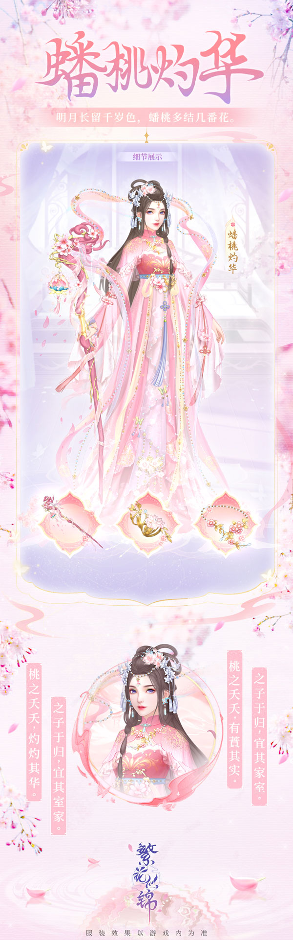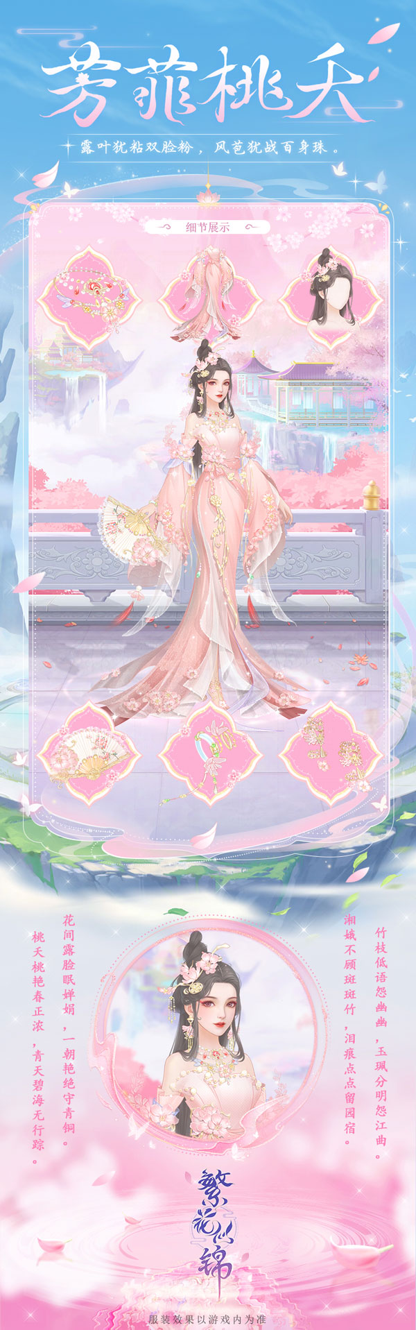 极致华美的服饰是值得仙主大人们为之付出努力和等待的,比如今天小小邀请仙主大人们共赏的仙裳——芳菲桃夭,其仅能在竞技广场的风华殿活动中获取,通过搭配服饰和同伴的助力,不断提升段位解锁部件,收集凌花兑换服饰,可着实需要费一番功夫呢!