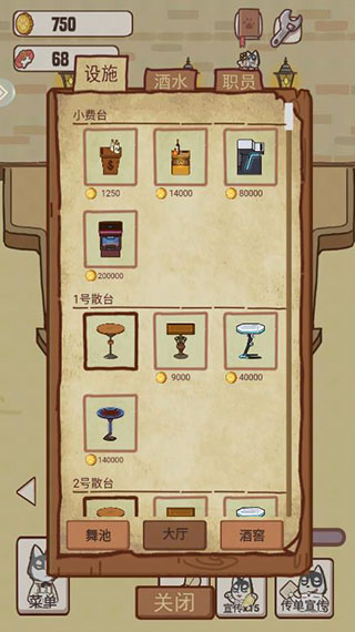 刚开始玩的时候,我有点紧张,因为完全不知道该从哪里下手。不过游戏里有详细的教程,一步步教你怎么摆放桌子、购买设施、调酒和招待客人。每次完成客人的订单,看着他们开心地喝酒,然后留下狗爪币,感觉特别有成就感。尤其是当你解锁了舞池之后,还能看到各种动物表演,真的超级有趣。