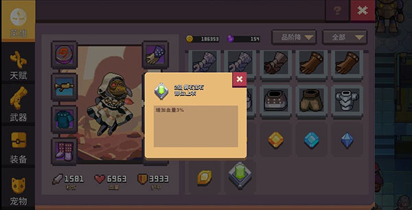 装备系统也是这款游戏的一大亮点,词缀决定了装备的好坏,通过聚变强化武器天赋可以打造强力装备。金色套装属性虽然不错,但词条才是最重要的。角色方面推荐蒸汽骑士,点出无敌技能配合减CD装备,基本能一直保持圣盾状态,打BOSS特别猛。