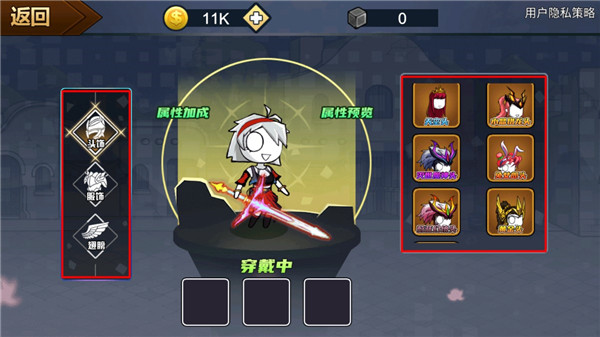 2、大家可以在这里进行头饰、服饰和翅膀的切换;