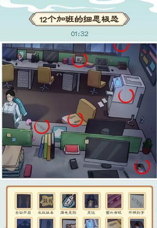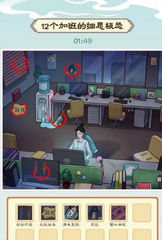 1、首先玩家是需要知道这边是可以知道这里是需要在加班中找到十二处的细思极恐,那么下面玩家就是需要前往寻找这些物品。