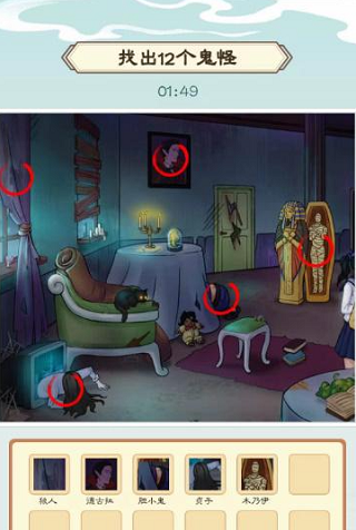 1、首先是看到这边的是有着12个鬼怪需要玩家前往找寻,有很多鬼怪隐藏的很好所以有些玩家是找不出这些鬼怪的位置。