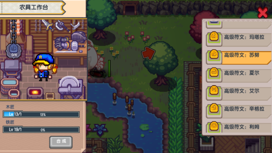 符文类的可以在约恩村的左上角农具合成台进行合成