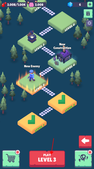 游戏的画面挺治愈的,虽然是卡通风格但整体氛围有点阴森,这种反差还挺有意思的。而且金币系统也很重要,多攒点钱能更快升级装备,甚至还能美化地盘,让整个“僵尸国度”看起来更壮观。