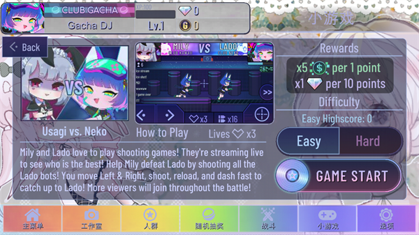 Easy难度下每1分可获得5倍Bits,每10分可获得一个Gems;Hard难度下每1分可获得6倍Bits,每10分也可以可获得一个Gems。