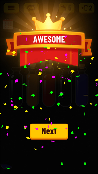 2、依靠自己的智慧完成多种不同颜色的水排序问题,解锁奖励给你更多更好的乐趣。