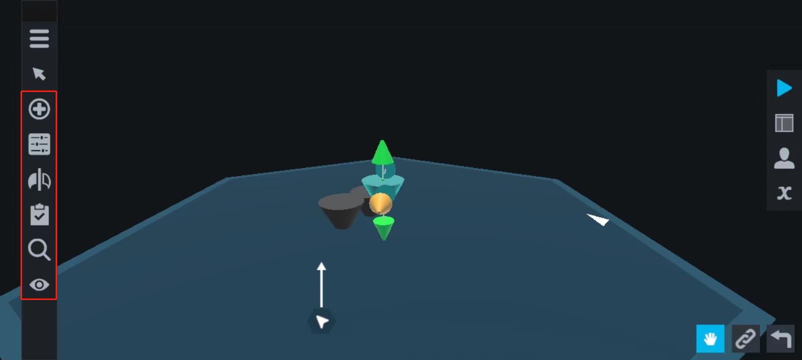 菜单(包括下载火箭:用于去官网下载火箭;新火箭:重新建造飞机或者火箭;加载火箭:加载的是自己已经保存的火箭;保存火箭:保存目前页面打造好的飞机或火箭;齿轮图标:就是设置,请参考上文的菜单中的设置,这是同一个页面、上传图标:向官网上传自己作品的渠道、相机图标:给自己的作品拍照的渠道;性能:火箭或飞机的性能分析表、编辑程序:编辑自动执行系统)、移动零件(参考基础教程)、零件表(参考基础教程和高级教程)、零件特性(参考下文的零件高级设置页面)、发射台(参考基础教程)、对称性(参考基础教程)、搜索零件(显示目前所使用的零件,便于对较小零件的精确定位)、视图选项(检查航天器或飞行器的重心位置是否准确)。