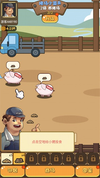 这款游戏真的挺有意思的!我感觉自己就是一个养猪场老板,每天要照顾这些可爱的猪宝宝。游戏画面超级可爱,2D画风配上Q萌的小猪,看着就让人开心。玩法也很简单,通过喂食让小猪快点长大然后卖掉赚钱,听起来好像不难,但其实还挺有策略性的。