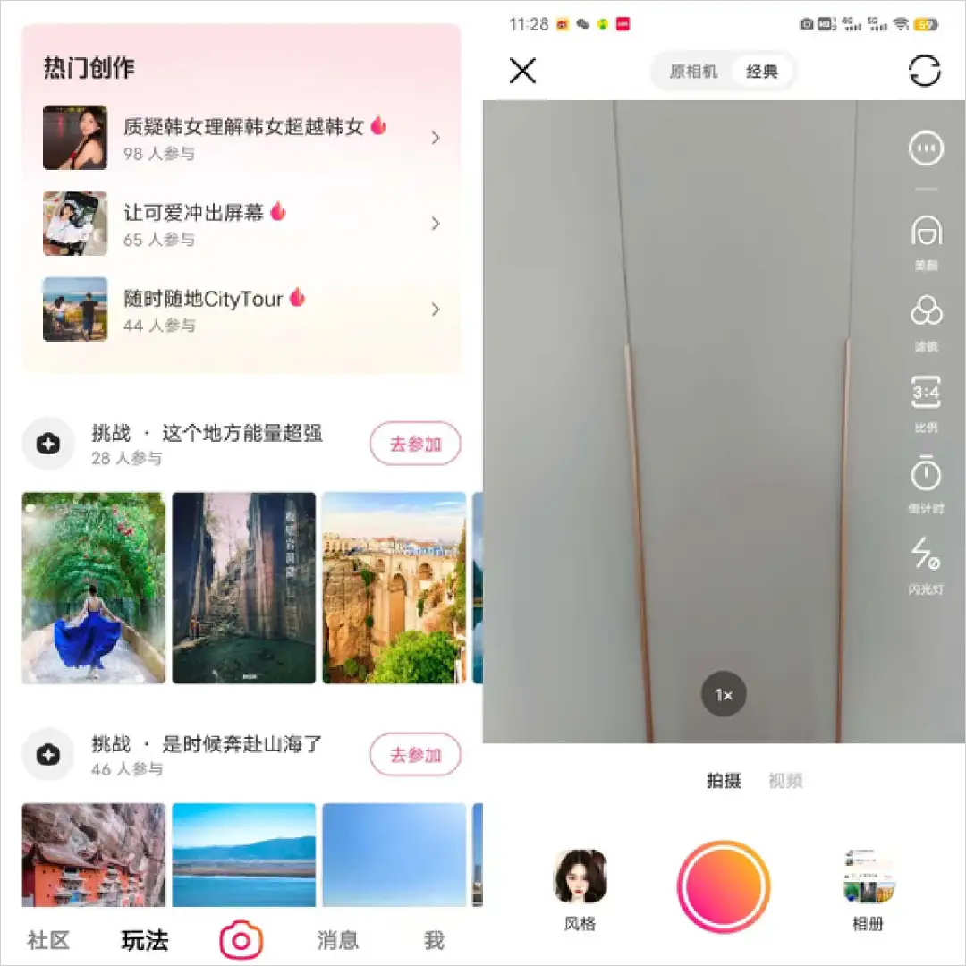 在「玩法」界面内,可以看到各类不同话题,若想参与话题挑战,只需点击「去参加」按钮,即可开启内容创作。