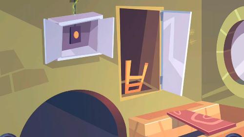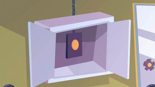 转动插梢,镜子下降,露出扶梯,此关通过。
