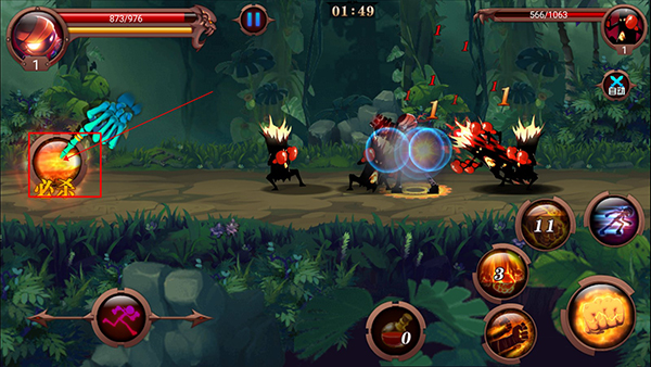 5、放置在普攻键周围的是技能键,需要时间冷却;