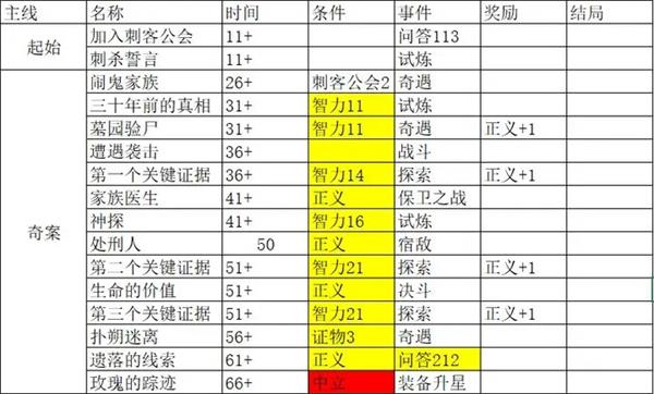 由于中间要求王族声望1级,邪恶,敏捷26,所以前期一定要做一个王族声望的事件,尽量保持邪恶。36之前路线不变,36-39选择条件为王族1的双面间谍,41-44双主线,46-49双主线,51-54双主线,56-59双主线,61-64单主线,70宿敌(没打过达到失败结局),75宿敌(没打过达到失败结局),76-79单主线,85宿敌,86奇遇,完成获得装备百无禁忌。