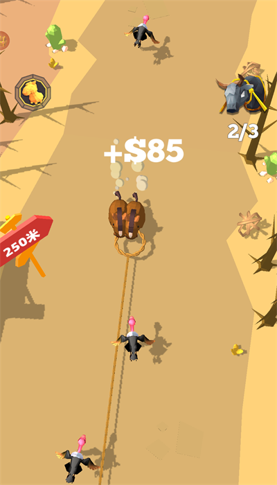 套马的汉子是一款模拟经营养成与闯关相结合的休闲游戏,玩家将会运用手中的绳索来荒原之上捕捉各种动物,驯服它们,你就能够将它们收纳进入到自己的动物园之中,这里充满着各种各样呆萌的小宠物们,快来饲养它们吧,不断扩建自己的场地,让这片土地能够容纳下更多的生物!